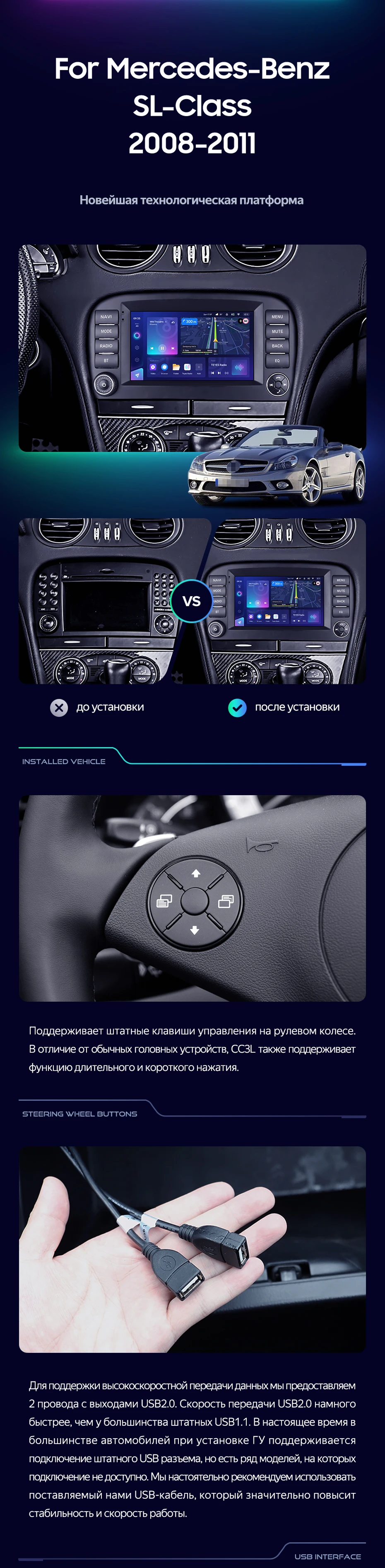 Штатная магнитола Teyes CC3 4/32 Mercedes-Benz SL-Class R230 (2008-2011) 7" - купить всего за 41 700 руб. в интернет-магазине в Тольятти Teyes.com.ru. ✓ Самый лучший выбор мультимедиа ✓ Лучшая замена штатному ГУ ✓ Тел. +7 (800) 775-31-74