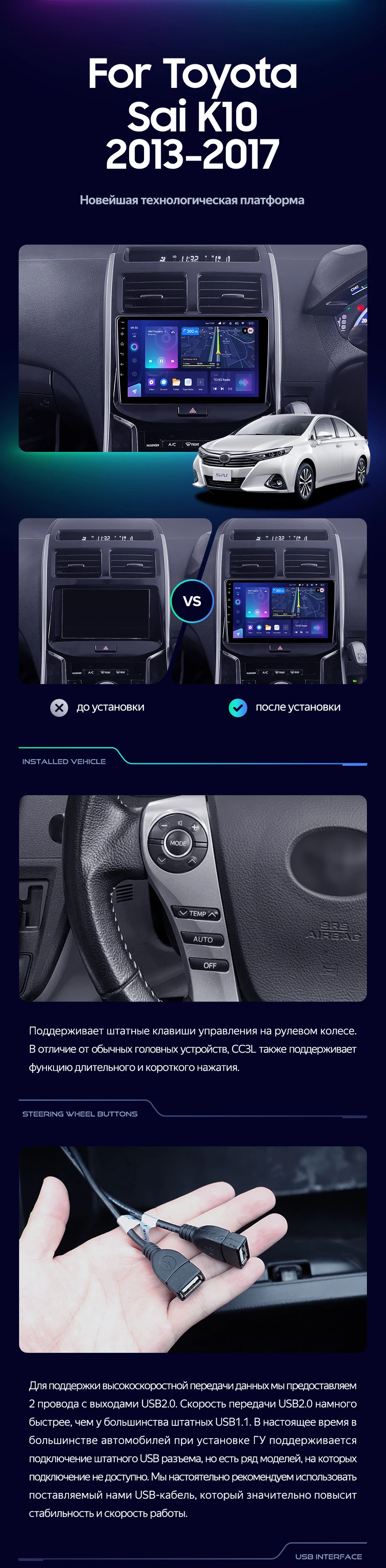 Штатная магнитола Teyes CC3L WiFi 2/32 Toyota Sai K10 (2013-2017) - купить всего за 19 500 руб. в интернет-магазине в Тольятти Teyes.com.ru. ✓ Самый лучший выбор мультимедиа ✓ Лучшая замена штатному ГУ ✓ Тел. +7 (800) 775-31-74