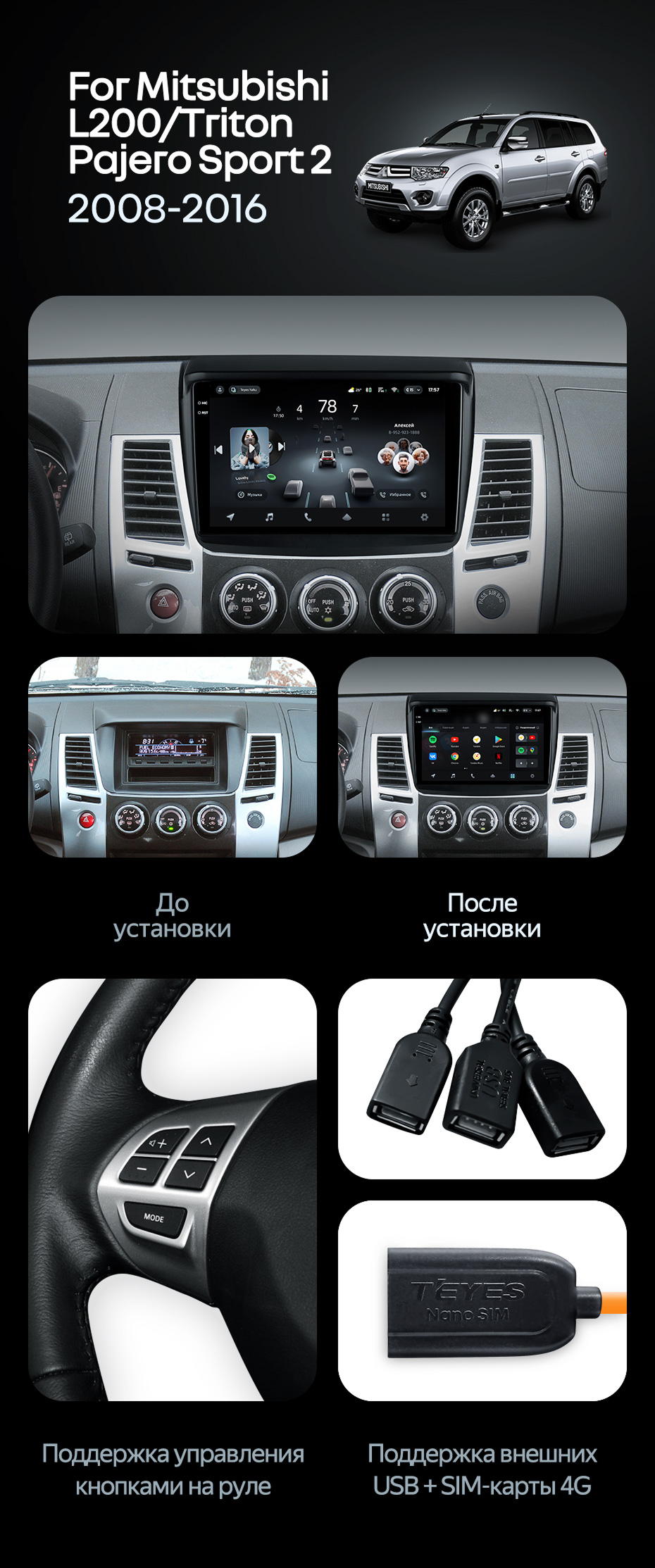 Штатная магнитола Teyes CC4 Pro 12/256 Mitsubishi L200 (2008-2016) - купить всего за 73 370 руб. в интернет-магазине в Тольятти Teyes.com.ru. ✓ Самый лучший выбор мультимедиа ✓ Лучшая замена штатному ГУ ✓ Тел. +7 (800) 775-31-74