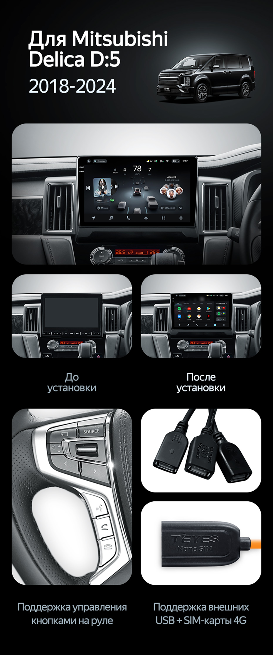 Штатная магнитола Teyes CC4 Pro 360 12/256 Mitsubishi Delica D:5 (2018-2024) - купить всего за 87 600 руб. в интернет-магазине в Тольятти Teyes.com.ru. ✓ Самый лучший выбор мультимедиа ✓ Лучшая замена штатному ГУ ✓ Тел. +7 (800) 775-31-74