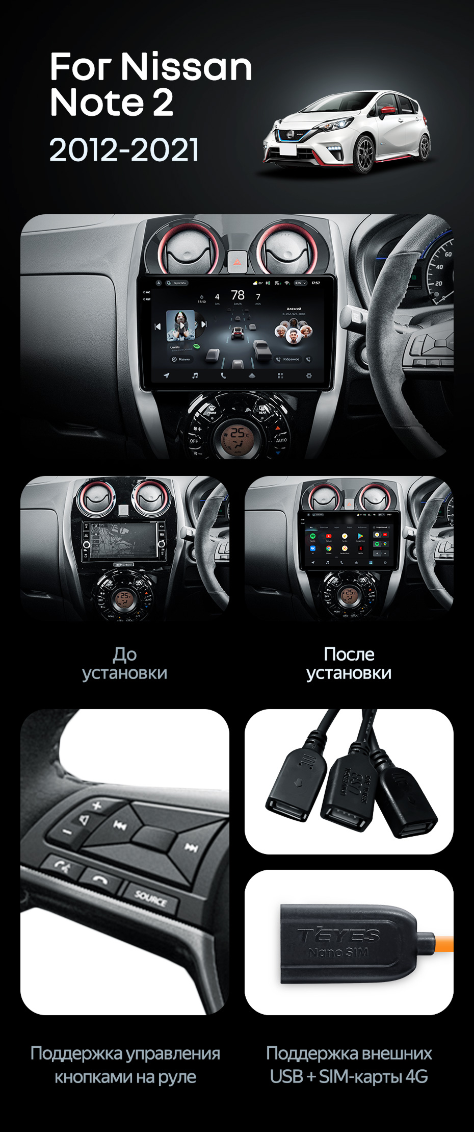 Штатная магнитола Teyes CC4 Pro 8/128 Nissan Note 2 E12 (2012-2021) - купить всего за 65 460 руб. в интернет-магазине в Тольятти Teyes.com.ru. ✓ Самый лучший выбор мультимедиа ✓ Лучшая замена штатному ГУ ✓ Тел. +7 (800) 775-31-74