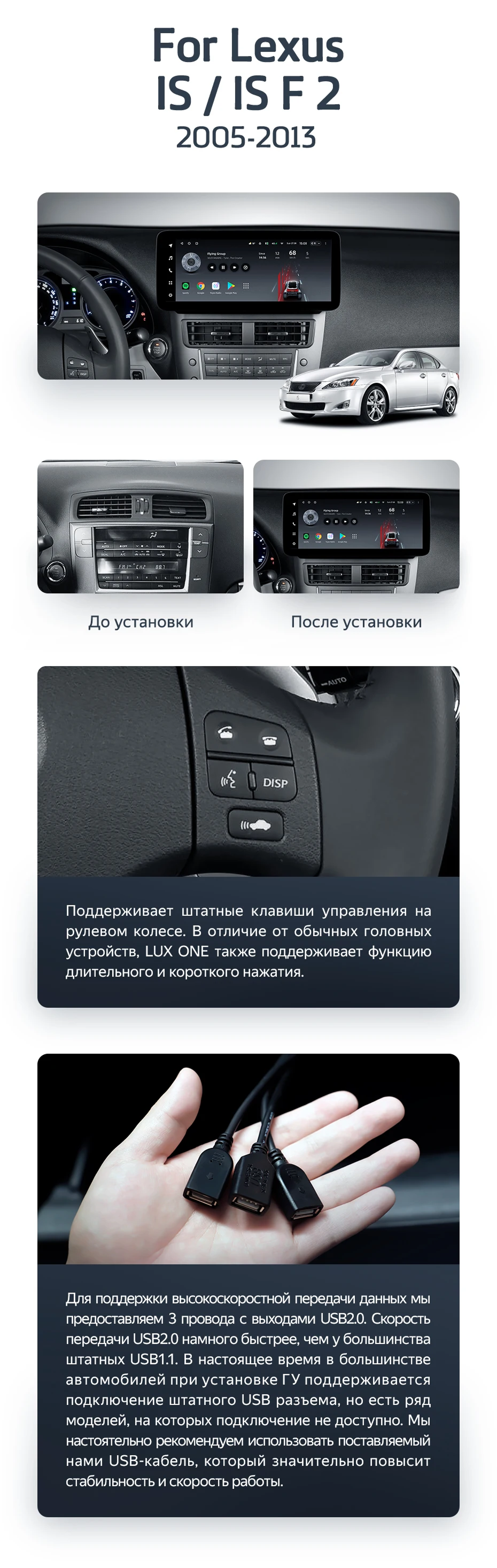 Штатная магнитола Teyes LUX ONE 4/64 Lexus IS F 200D 220D 250 250C 300 350 350C 2 XE20 (2005-2013) - купить всего за 47 400 руб. в интернет-магазине в Тольятти Teyes.com.ru. ✓ Самый лучший выбор мультимедиа ✓ Лучшая замена штатному ГУ ✓ Тел. +7 (800) 775-31-74